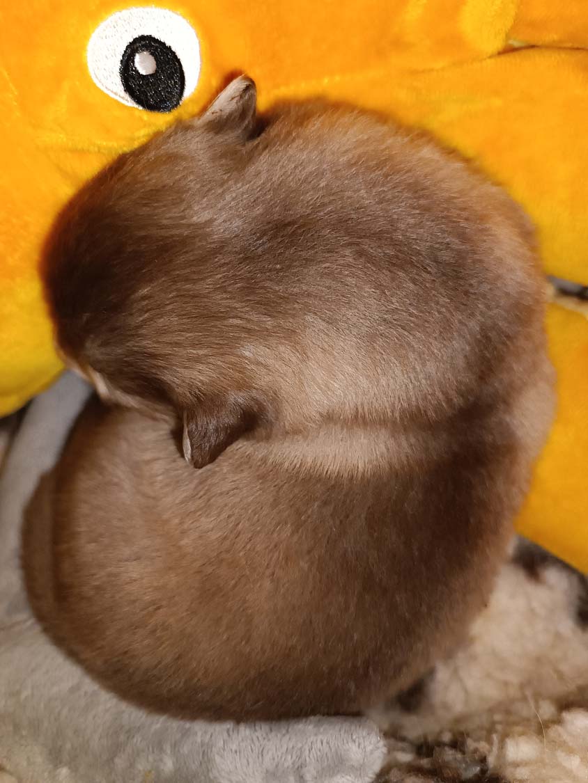 Das Video ist von heute (05.03) ein kleines bisschen verändert, Hubble und Helike, haben aber entschieden lieber ein Nickerchen zu machen als zu erkunden. Helix ist der neugierigste im Wurf, er war der erste der sich durch den kleinen Tunnel getraut hat.