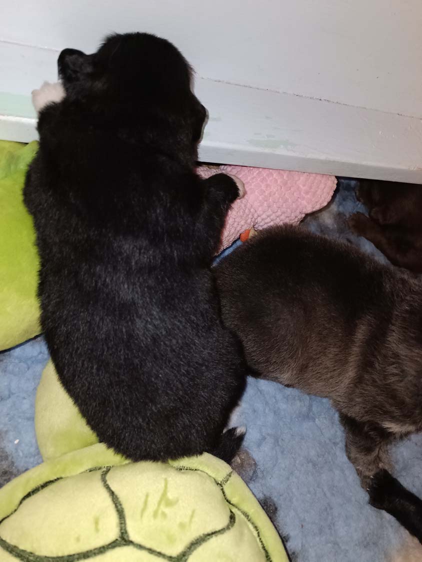 Die Welpen wachsen und Gedeihen und die ersten haben bereits die 500g Marke geknackt.