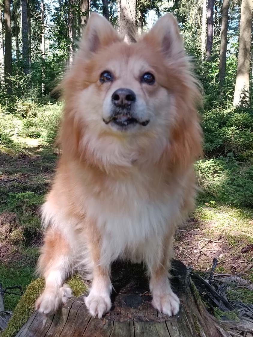 Und so würde Frauchen mich beschreiben:Angel ist ein Traumhund - mein durchgeknalltes Etwas... Sie bietet sehr viel von sich aus an und schaut viel von den Anderen ab (allerdings auch jeden Mist). Sie liebt Fressen über alles und frisst alles und klaut auch alles fressbare. Wir sind so der hoffnungslose Fall in der Hundeschule beim Antigiftködertraining. Wenn sie mal nicht auf der Suche nach was fressbarem ist, liebt sie es bei mir zu sein, um zu kuscheln. Sie liebt Streicheleinheiten und verteilt dabei auch mal gern ein paar Schlabberküsse. Hab ich schon erwähnt, dass sie Fressen über alles liebt - Banane, Möhre, Kohlrabi - wenn man nicht aufpasst würde sie einen das Essen auch vom Teller klauen, okay sie klaut regelmäßig das Essen vom Teller, eine Packung Sauerkraut ist nun ständig auf Vorrat. Sie ist halt ein richtig kleiner (B)Engel. Hab ich schon erwähnt dass sie Fressen mag? Gefrierschrank öffnen ... Check. Dörrautomat öffnen... Check. Küchenschrank öffnen... Check. Babygitter in der Türe überspringen um in die Küche zu kommen... Check. Man lernt definitiv dass es besser ist aufzuräumen. Aber ich liebe sie trotzdem. Sie ist mein Hund mit der größten Lauffreude und sie liebt es am Dogscooter zu laufen. Ausstellungen sind nicht so ihr Ding, außer wenn wir eine Runde durch die Verkaufsstände drehen und sie was zu fressen abstauben kann. Sie ist wie meine anderen Hunde sehr sozial, kommt mit fast allen anderen Hunden sehr gut aus. Aufgrund des Katarakts (Grauer Star) darf Angel nicht in die Zucht, der graue Star wurde im Alter von 18 Monaten bei ihr festgestellt, sie wird nun bald 10, bisher hat sie keinerlei Beeinträchtigungen und äußerlich sieht man an ihrem Auge keine Veränderung, nur ein Fachmann mit Spezialinstrumenten kann den grauen Star erkennen, Augentierarzt bezeichnete es als stationären Katarakt.