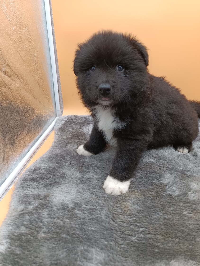 Bei der 3. Hündin bin ich mir noch nicht sicher welche Farbe sie mal haben wird. Ich denke schwarz, die Besitzerin vom Deckrüden meint sie erkenne ganz dezente Tan-Abzeichen. Ich sehe sie nicht wirklich, ich könnte theoretisch einen Gen-Test machen, dauert etwa 4-5 Wochen, bis dahin vermute ich aber dass wenn es wirklich tan abzeichen sind, sie deutlicher werden. Diese Abzeichen bilden sich auch erst innerhalb des ersten Lebensjahres richtig aus.